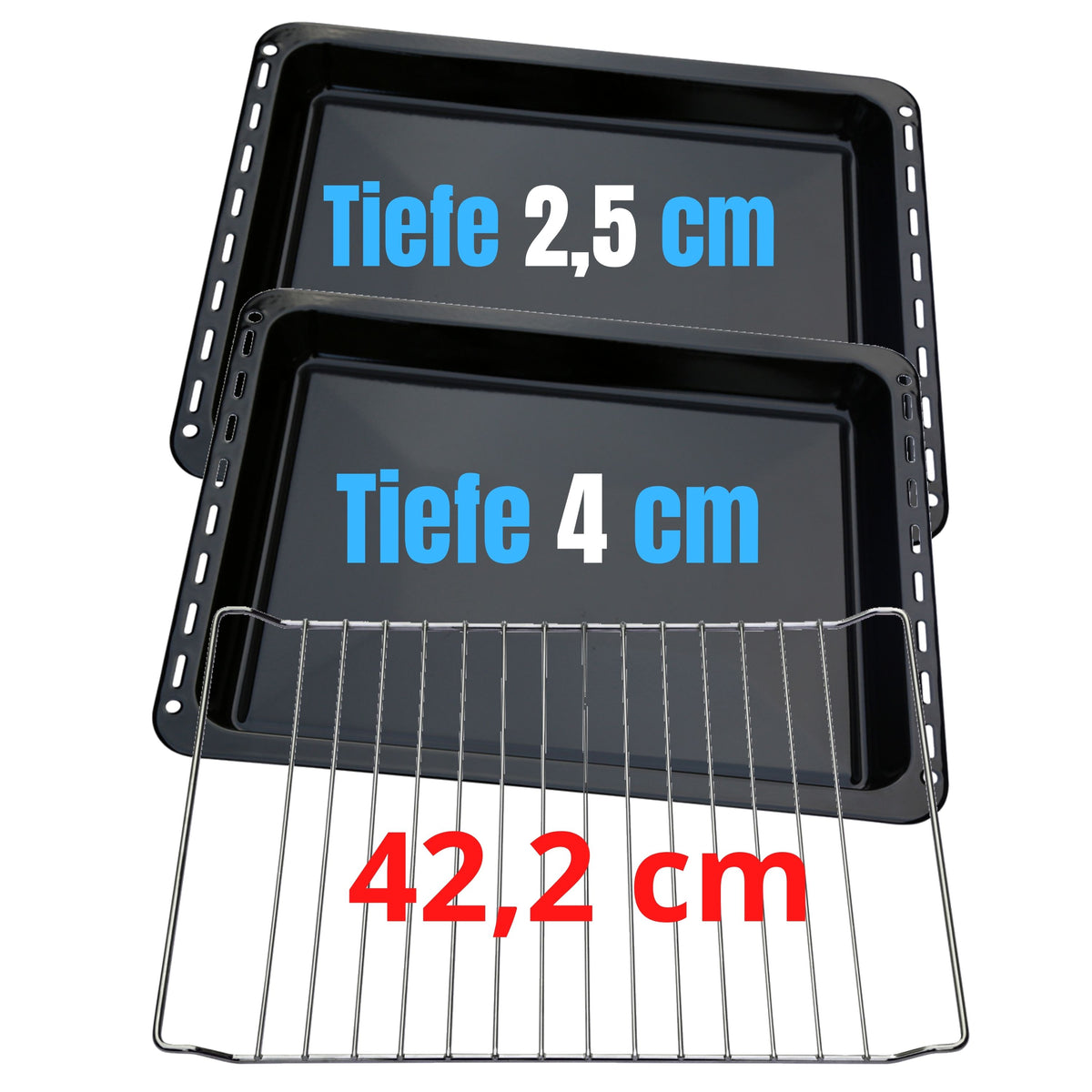 Backblech 3er SPARSET 422x370x 25 und 40 mm mit 2 Backbleche 2 tiefe emailliert und 1 Backrost 422x370x25 passend für Electrolux AEG Juno Zoppas Zanussi Teile Nr. 3531939233 / 353193921-7