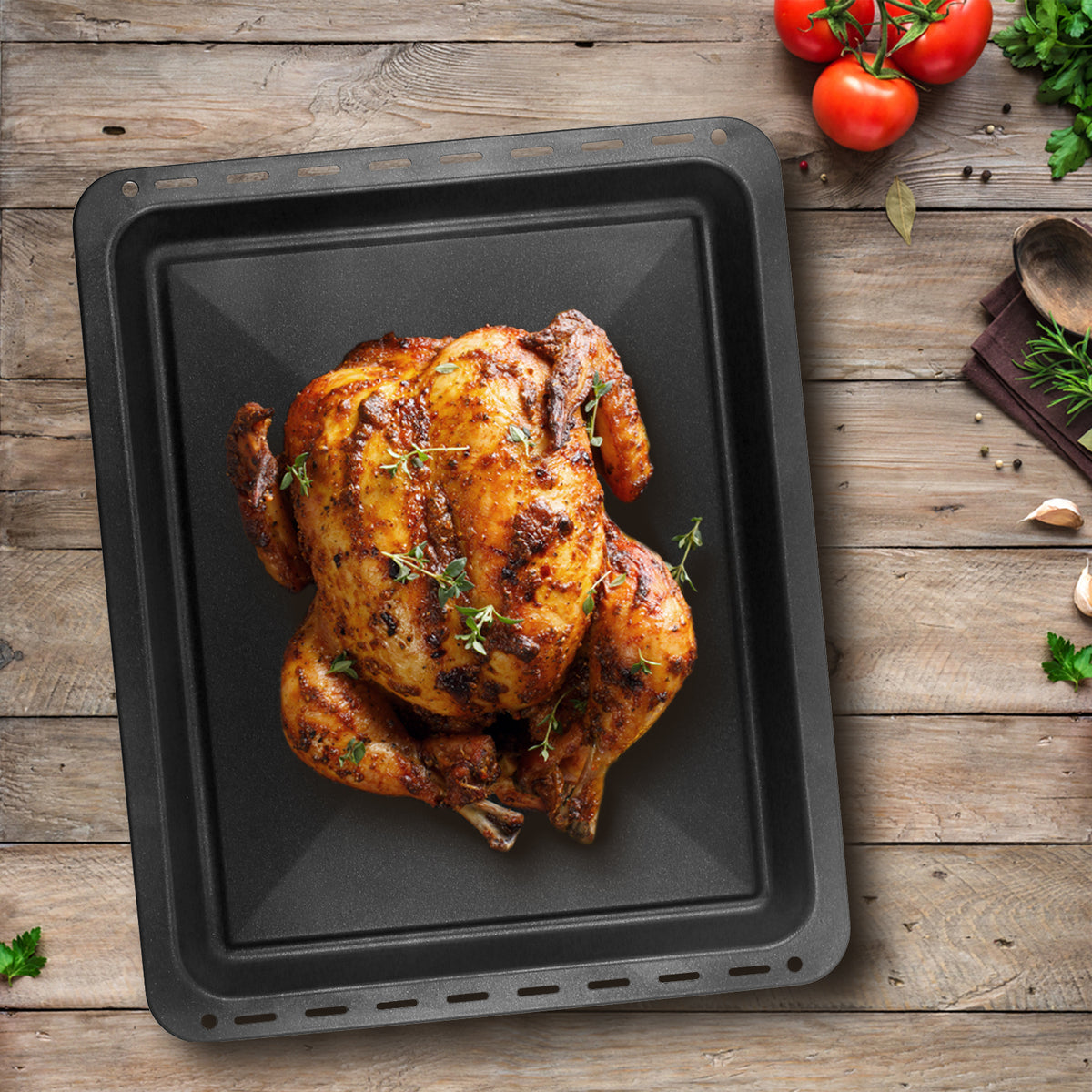 - 🍽️ Antihaftbeschichtete FETTPFANNE UND BACKBLECH geeignet für alle möglichen Arten von Backwaren z.B. Kuchen, Keks, Muffin, Plätzchen, Brot und Brötchen, Hefezopf und Stollen aber auch braten von Fleischsorten. Hohe Seitenbereiche sind ideal, um einen Braten zuzubereiten, da so der austretende Bratensaft nicht überlaufen kann.